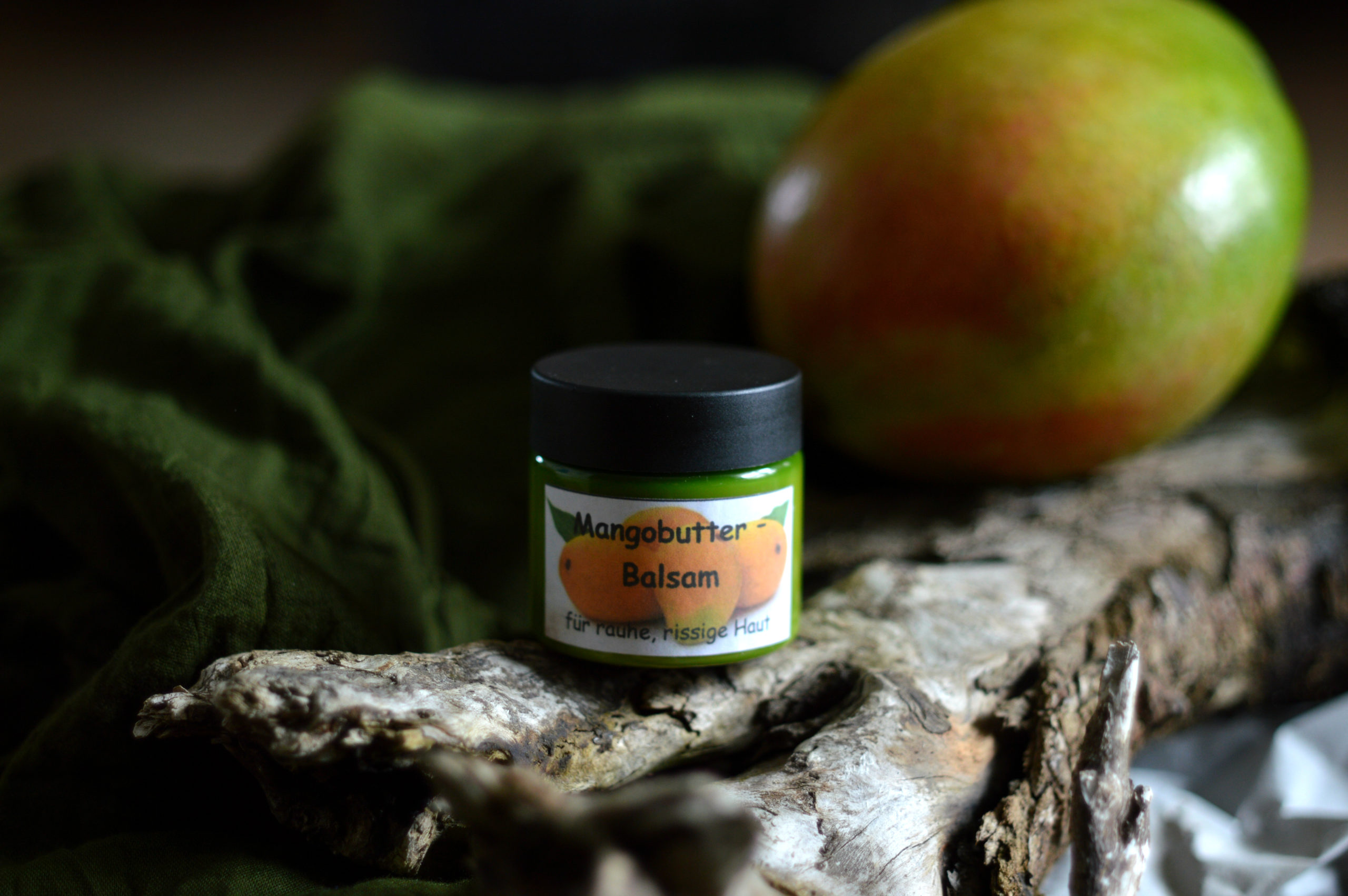 Der Mangobutter – Balsam pflegt besonders raue, rissige Hautstellen wie Füsse und Ellenbogen. Auch als Nagelbalsam – Handbalsam ist er wunderbar geeignet. Er enthält feuchtigkeitsspendende Mangobutter, und viel reichhaltiges Macadamianussöl. Der Reiswachs gibt dem Balsam eine fein schützende Textur. Die Haut fühlt sich nach dem eincremen seidenzart an und duftet fein dezent nach Mandarinen.